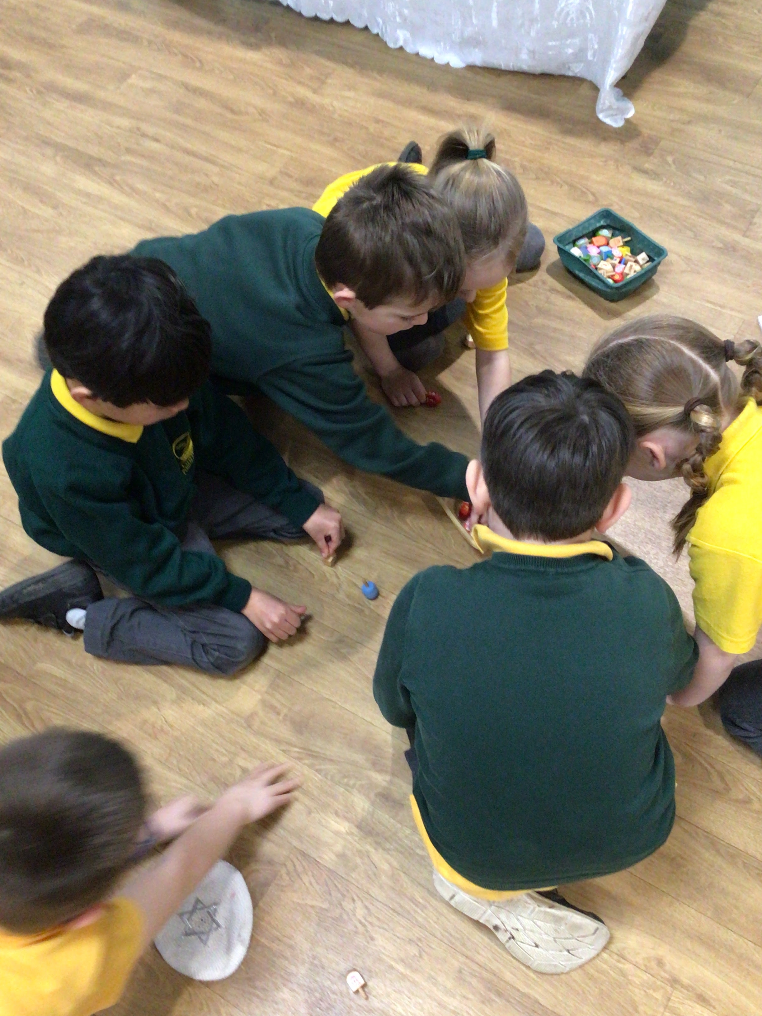 Today we had a brilliant workshop with Ruth to learn all about Judaism. She showed us a Torah and spoke about the rules and words that she follows in her daily life- the Ten Commandments. She then showed us some special objects from her home. The children found that lots of things were written in Hebrew. We saw a mezuzah - a special box that Jewish people put on their door frames that contains a part of the Torah. We also looked at a menorah candlestick and Ruth talked about Hanukkah and how she celebrates it and the different games she plays including a driedel. Ruth told us about Shabbat and how they celebrate on a Friday night with grape juice and challah bread.